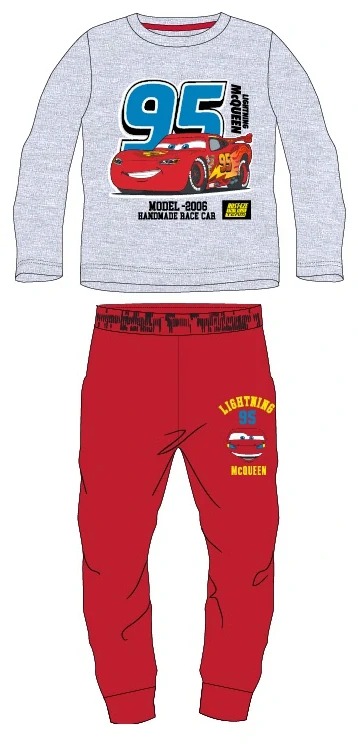 Dětské pyžamo s dlouhým rukávem a dlouhými nohavicemi je perfektní volbou pro malé fanoušky rychlých aut. Vyrobeno z vysoce kvalitních materiálů, dostupné ve dvou barvách – šedé a modré – s potiskem zobrazujícím ikonického filmového hrdinu Bleska McQueena. Chlapecké pyžamo je ušito z vysoce kvalitní bavlny, která je měkká a příjemná k citlivé dětské pokožce. Horní díl: šedá melange: 55% bavlna + 45% polyester, kalhoty: 100% bavlna, 160 gsm. Barevné provedení - horní díl světle šedý s potiskem, kalhoty červené s potiskem. Dlouhé rukávy i kalhoty zajišťují pohodlí a teplo v noci. Kalhoty jsou s nekompresivním elastickým pasem, zcela volné a pohodlné na spaní.