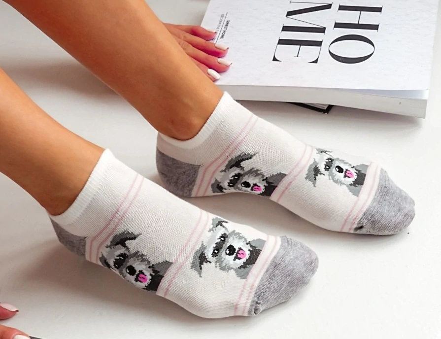 Dámské trendy 3/4 ponožky vyrobené z vysoce kvalitní bavlny s motivem psa knírače. Barevné dámské ponožky v módních vzorech a barvách. Perfektně sedí na noze a poskytují vysoký komfort nošení. Jsou ideální pro každodenní styling, pro lidi, kteří si cení pohodlí.