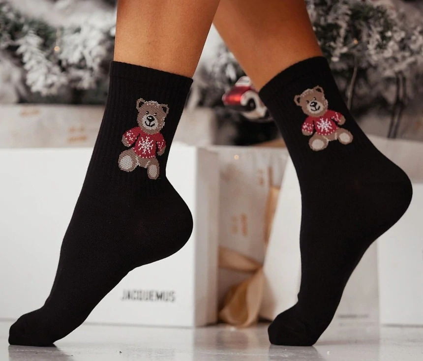 Trendy ponožky "Medvídek" jsou skvělý nápad, jak udělat dívce či ženě velkou radost. Skvělý tip na dárek nejen na Valentýna nebo Vánoce. V jejích očích jistě uvidíte spokojenost a radost. Vyrobeny z nejkvalitnějších materiálů, jejich vzhled vydrží velmi dlouho. Velikost 37/41, barevné provedení černé /viz. foto/.