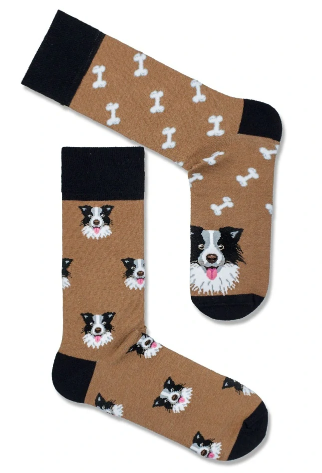 Pánské trendy ponožky vyrobené z vysoce kvalitní bavlny s motivem psa Border kolie, nestejné, ale ladící motivem. Barevné pánské ponožky v módních vzorech a barvách. Perfektně sedí na noze a poskytují vysoký komfort nošení. Jsou ideální pro každodenní styling, pro lidi, kteří si cení pohodlí. Složení: 75% Bavlna, 20% Polyamid, 5% Elastan, barva hnědá.
